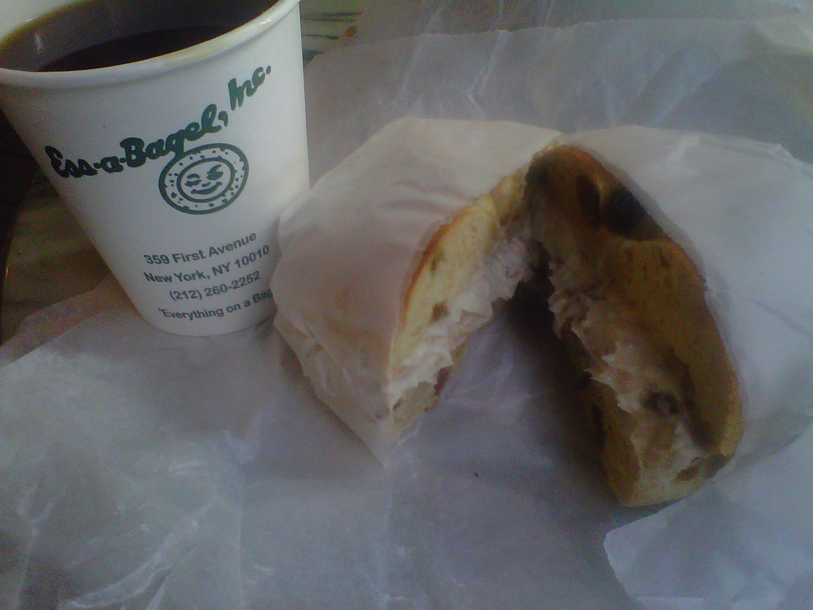On a side note, while walking to Ess-A-Bagel (very recommended- both the walking and Ess-A-Bagel), I turned the corner and a bunch of pigeons flew into the air John Woo style except for the fact that I am not in an Asian action movie, they weren't doves and I wasn't shooting at anyone. Also, I am pretty sure that when actors are in a scene like that they aren't thinking, please don't let any of these fucking birds shit on me.